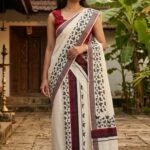 Pure Cotton Mulloth Set Mundu with Blue and Light Pink Border - Vihana