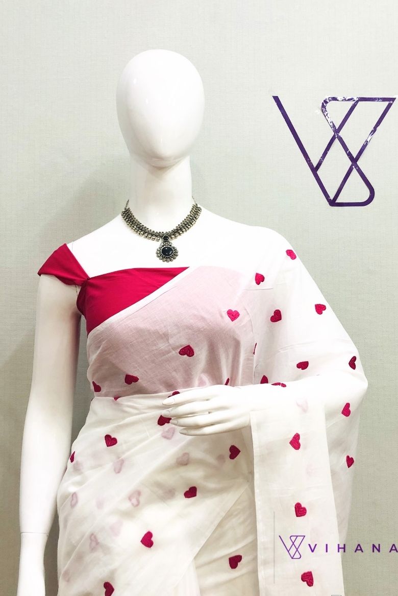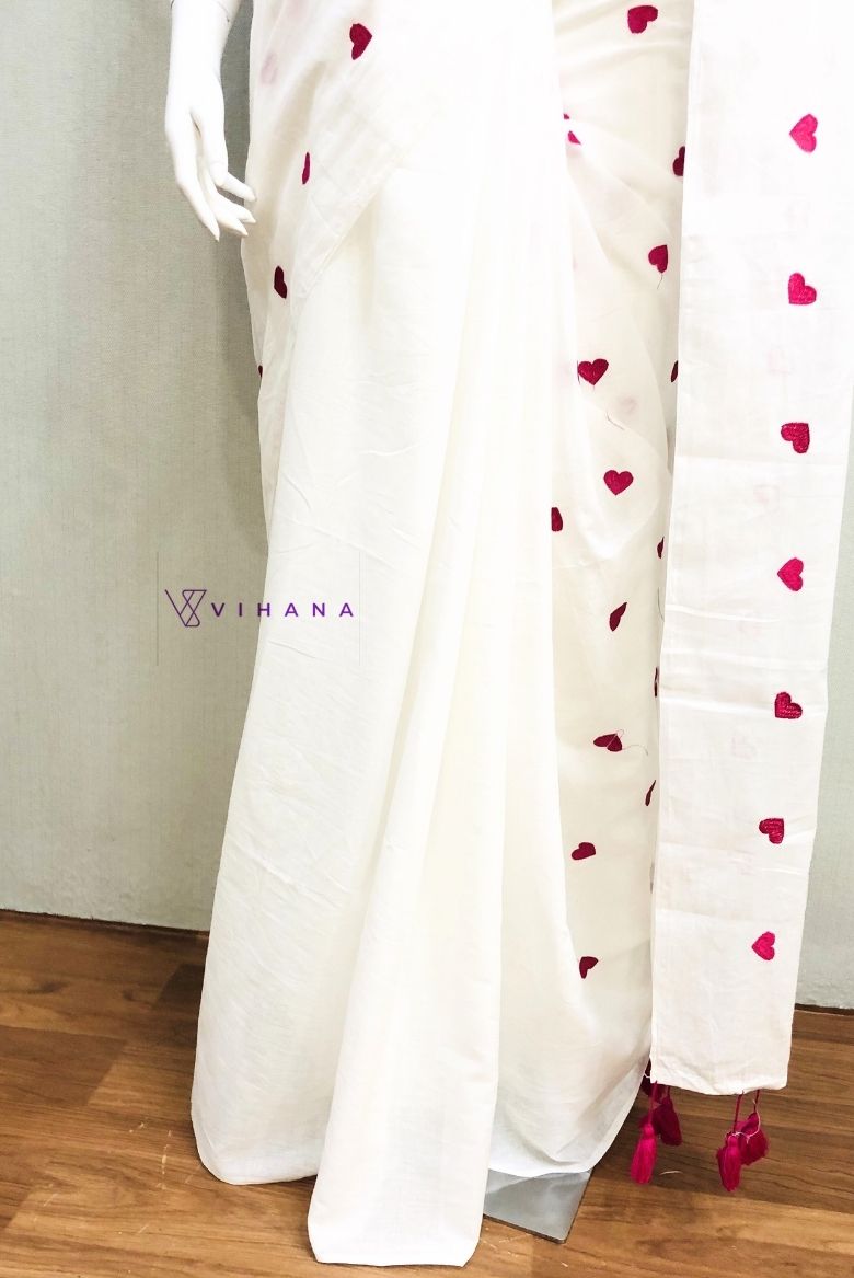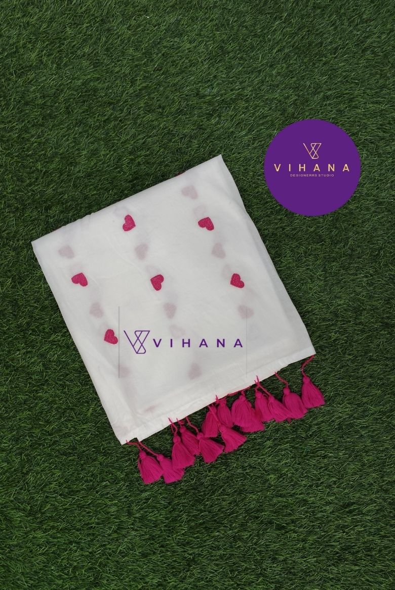 14 February 2026Pure Mul Cotton White Elegance with Sweet Pink Heart Embroidery
