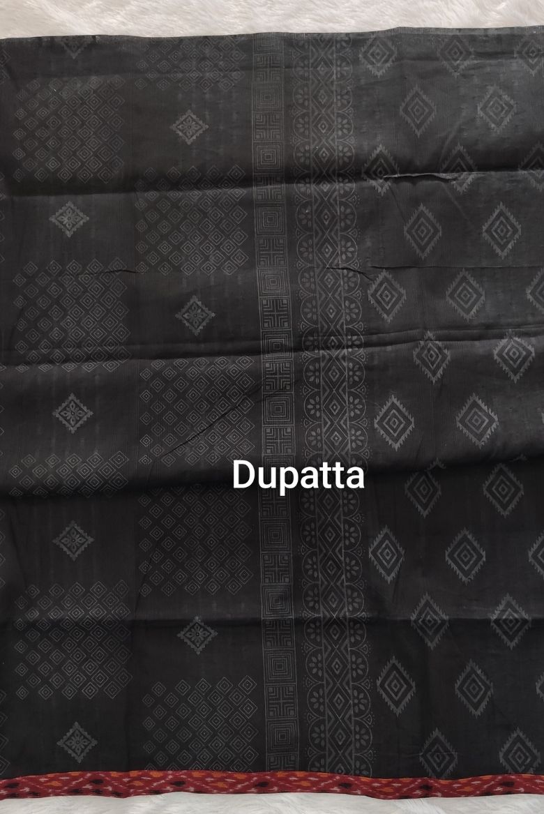 Earthy Black Patola Printed Cotton Salwar Suit Material