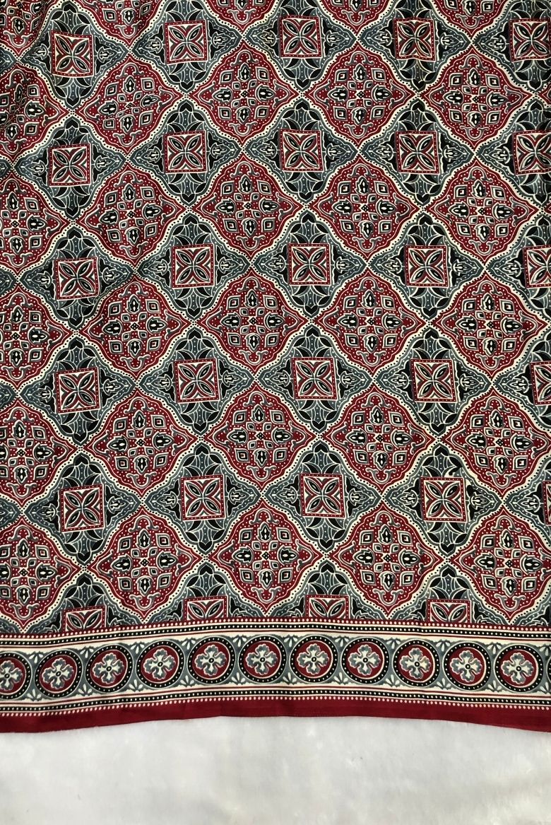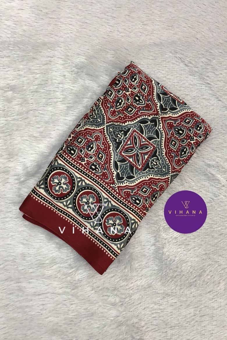 6 February 2026Red and Black Combination Ajrakh Print Satin Modal Silk Saree