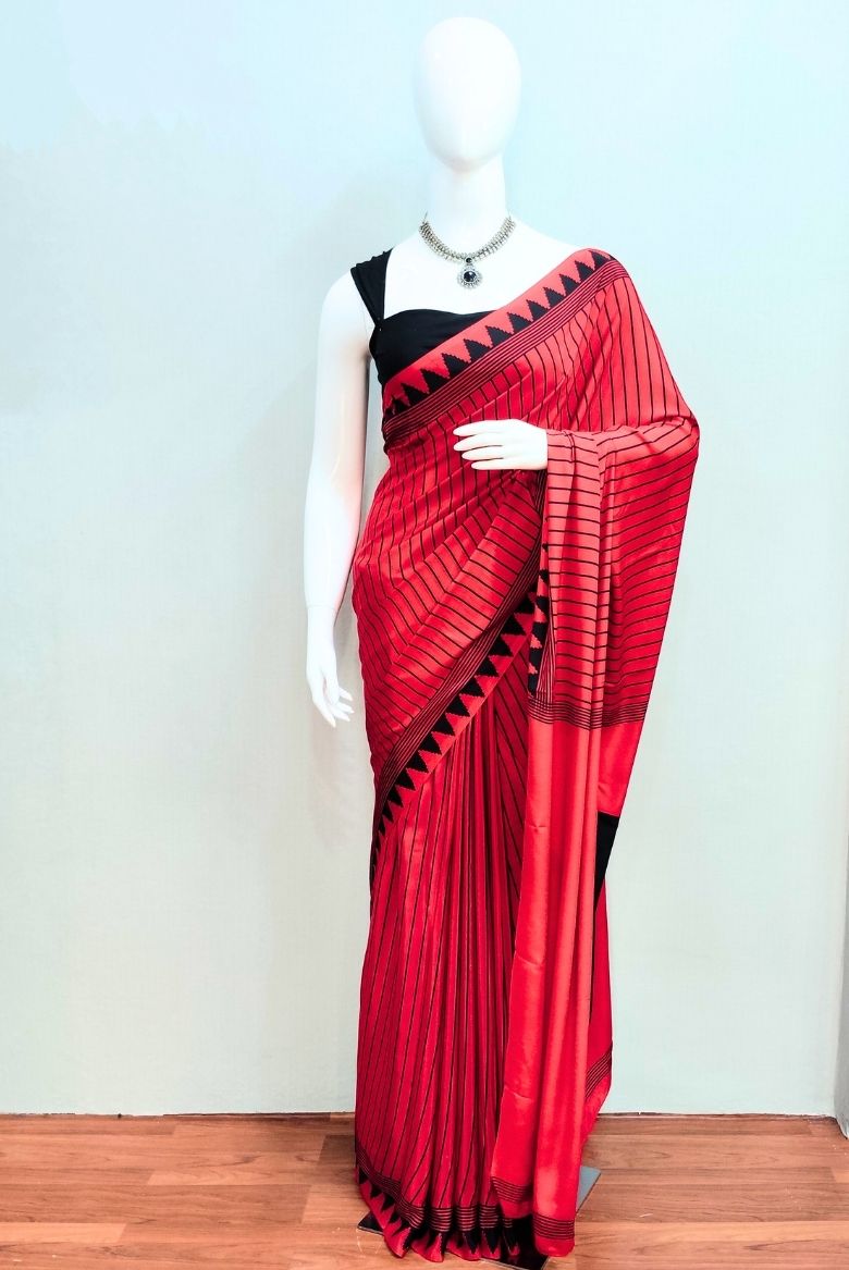 15 December 2025Elegant Red Semi Modal Crepe Silk Saree