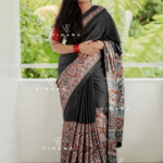 Regal Black Modal Satin Silk Saree with Traditional Ajrakh Print