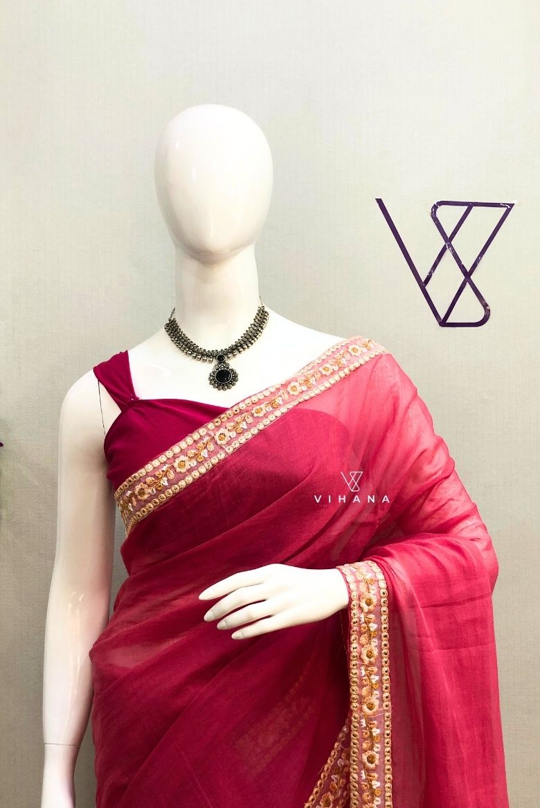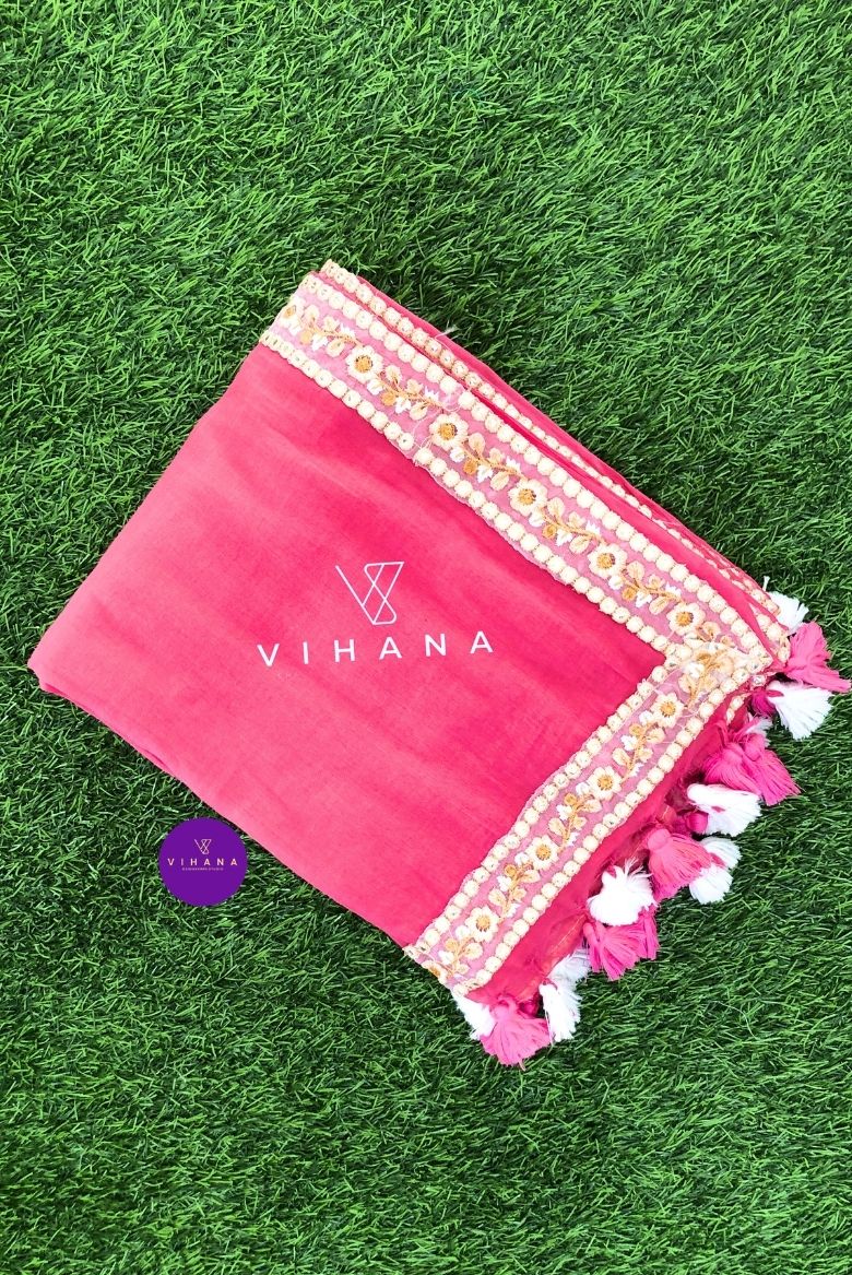 20 February 2026Pink Mul Cotton Saree with Embroidery Lace Work