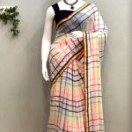 Aiswarya Laxmi Inspired White Mul Cotton Saree with Vibrant Multicolored Check Pattern
