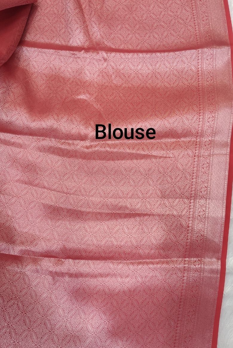 Brick Red Banarasi Silk Saree with Unstitched Blouse piece