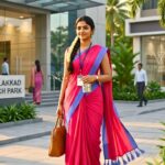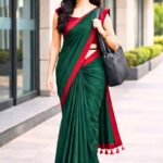 Light Blue Khadi Cotton Saree with Lime Green Border - Vihana