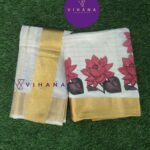Kerala Cotton Set Mundu with Golden Strip with Lotus Print