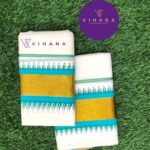 Traditional Kerala Set Mundu with Turquoise and Golden Zari Border