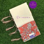 Pure White Linen Cotton Saree with Striking Burnt Orange Kalamkari Border