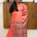 Coral Peach Kota Munga Silk Embroidery Saree
