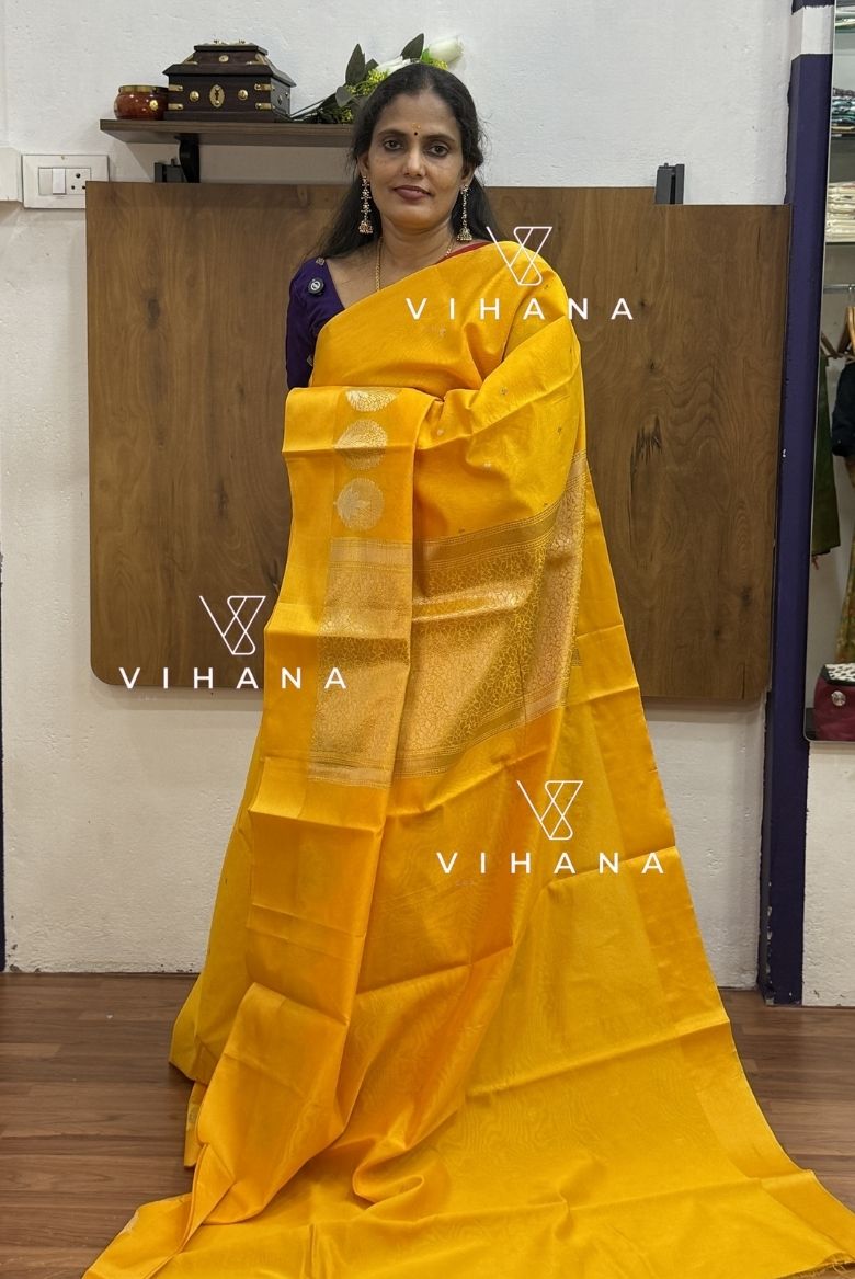 5 January 2026Yellow Banarasi Katan Silk Saree