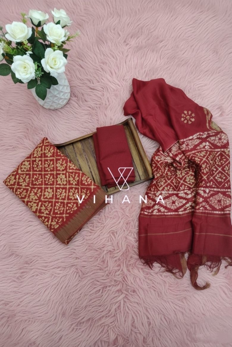 Dusty Red Banarasi Katan Silk